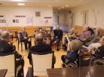 みなさん椅子にかけて、背筋を伸ばすようにリズムよく腕を動かしています。