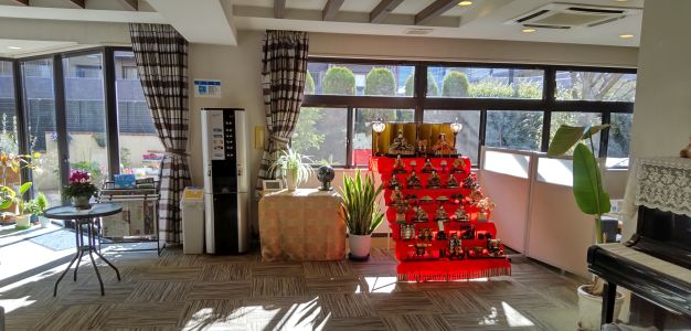 立春が過ぎましたので、ラウンジにお雛様をお迎えしました。