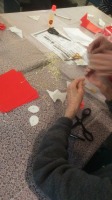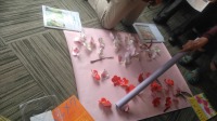 こんな感じで、皆様に見て頂きながら模造紙に飾っていきます