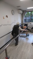 平行棒を使って行って来てと繰り返し、歩く練習~
