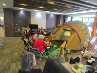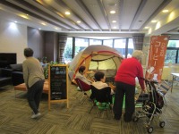 少しでも雰囲気を味わって頂こうと、キャンプグッズが並びます。
