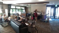 館内から見る雨模様で入居者様「大変ね~」と心配されています。
