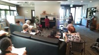 ピアノの演奏に合わせて、歌謡曲から民謡まで