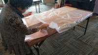テーブルにテーブルクロスを敷いて頂きまして・・・