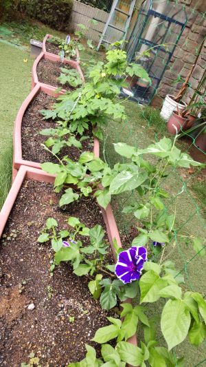 今年のグリーンカーテンはアサガオとゴーヤ!