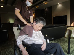 ご入居者様が気持ちよさそうにマッサージを受けている風景です!!