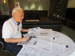 ご主人はいつものように新聞を読まれる風景が・・・!!