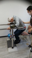 PT指導のもと、「良くなってきています」「もっと上げられますか?」「頑張って」