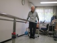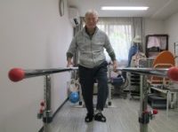 平行棒を使って、歩行訓練です、それは日々積み重ねた訓練です。