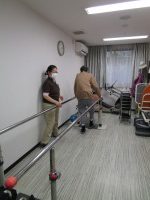 平行棒を使っての運動、下肢筋力維持、歩行訓練