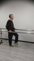 この日は、平行棒を使って下肢挙上のリハビリ!