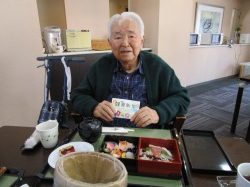おせち料理を入居者様が美味しそうに召し上がられている中