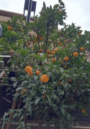 グリーンライフ船橋創立時に植樹された八朔の木。今年はたわわに実りました!
