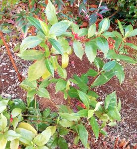 ギザギザな形ををした葉っぱは1年中枯れることなく、冬に実を付けます。