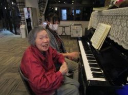LINEビデオ電話の後に、1階ラウンジにあるピアノで「きよしこの夜」を演奏。