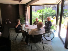 時間帯が一部変更になっての開始、入居者様もリズムを刻む、一緒に歌うなど