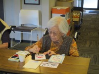 こちらの入居者様方は、模写などされています。映っていませんがクロスワードパズルも熱心にされています。