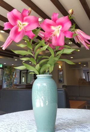 皆様に見ていただきたくて、1階の受付の花瓶に活けました。