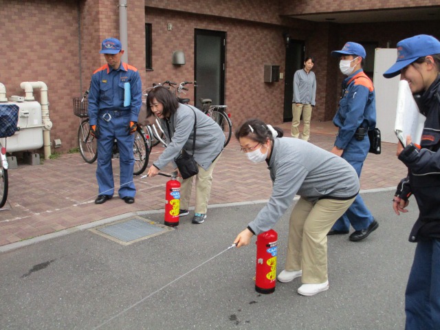 その後、事務所スタッフによる119番通報の練習や、消化器による