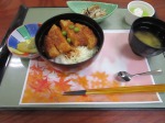 デミグラスソースとカツ、ご飯、キャベツ(千切り)が