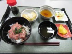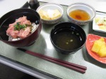 いや~ネギトロは美味しい。付け合せも、揚げ豆腐にお漬物です。