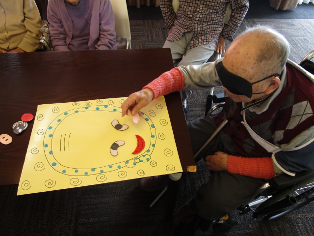 スタッフ手作りのおかめさんとひょっとこさんお顔のパーツを、