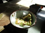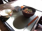 にゅうめん、竹輪の磯部揚げ、湯葉の生姜和え、フルーツ