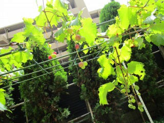 グリーンライフ船橋の中庭は、果物や野菜が植えられています。
