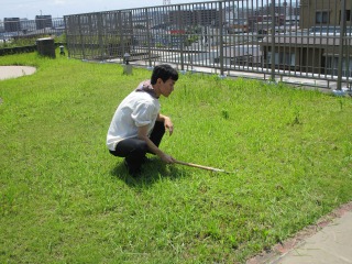 施設長がみずから、鎌やハサミを振りかざし・・・雑草を駆逐・・・!!