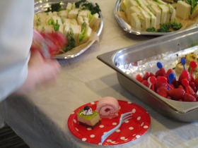 メニューも、一口サイズの桜ロールケーキやピスタチオのムースケーキにサンドイッチ・・・チョコレートフォンディユのご用意もございました。