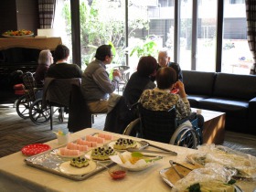 ご家族様で時間を過ごされる方、職員と会談をされる方、皆様、様々に交流をされ、親睦を深めていただけた様に感じます。
