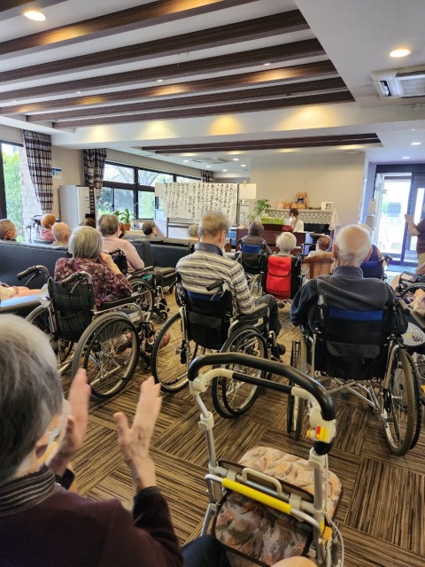 最初は控えめだった入居者様達も、どんどんのってきて手拍子の音も