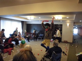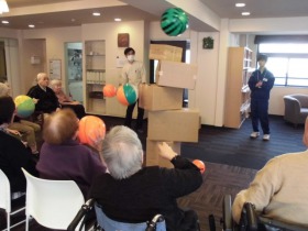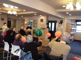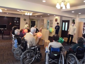 ”豆”の代わりの新聞で丸めた”玉”や、ビーチボール等々、皆さん必死に投込みます。