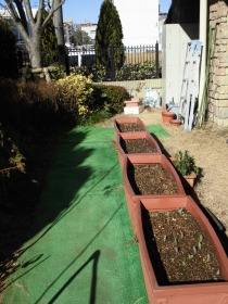 中庭のこのスペースに、チューリップの”球根”を植え込みました。