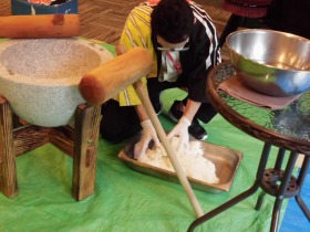 そして順番に、皆さん”杵”を持ち、「よいしょ!よいしょ!」の掛け声でつきます。
