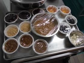 トッピングメニューは、大根おろし(ポン酢)・砂糖醤油・ココア・きな粉・ハチミツ・なめたけの6種類です。