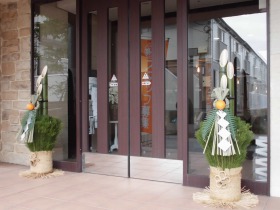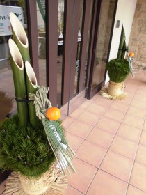 昨日、お正月飾りの”門松”を施設玄関入り口に、