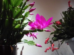 先日ご紹介いたしました”シャコバサボテン”とは別の鉢のシャコバサボテンが花を咲かせ始めました。