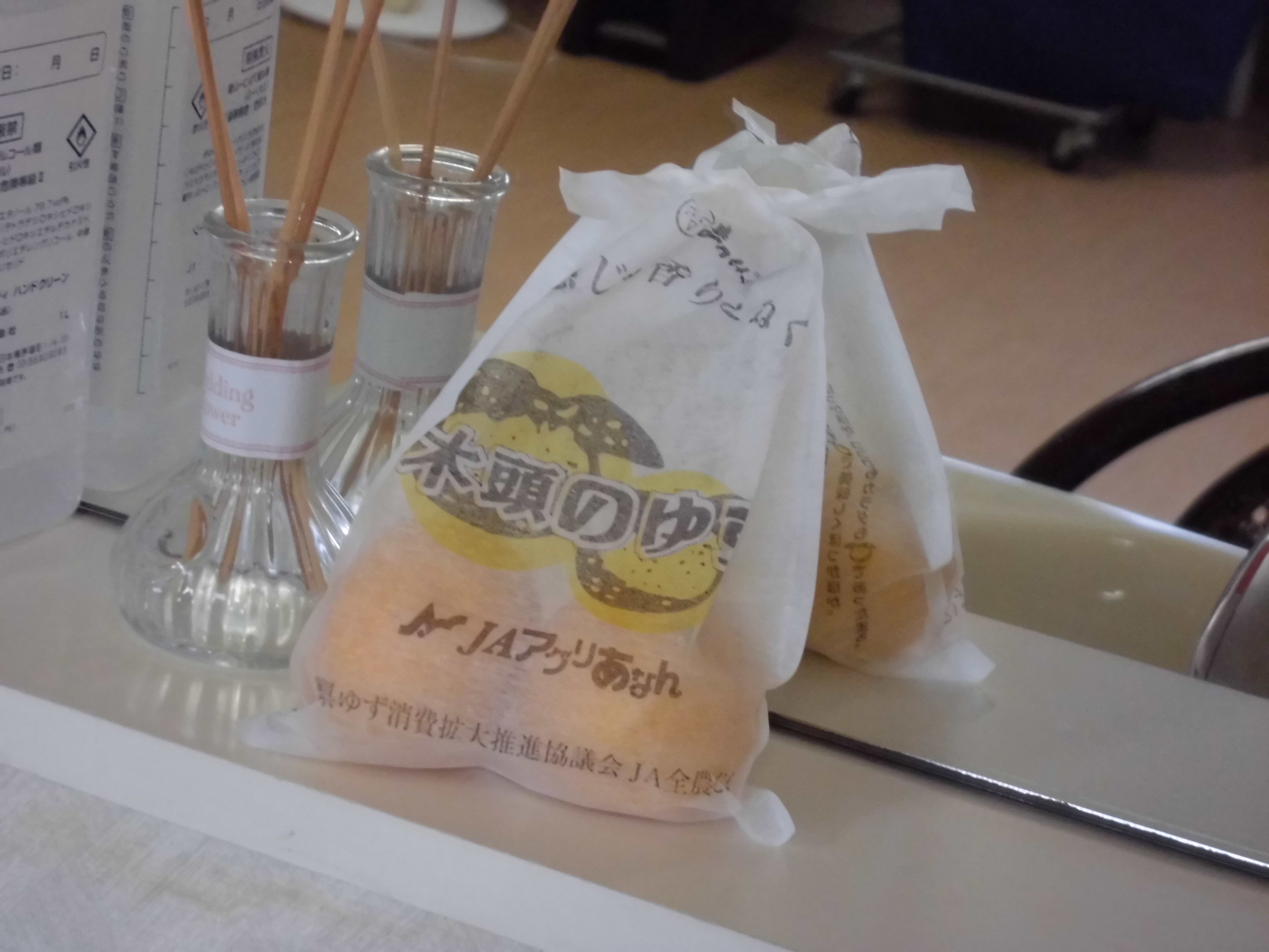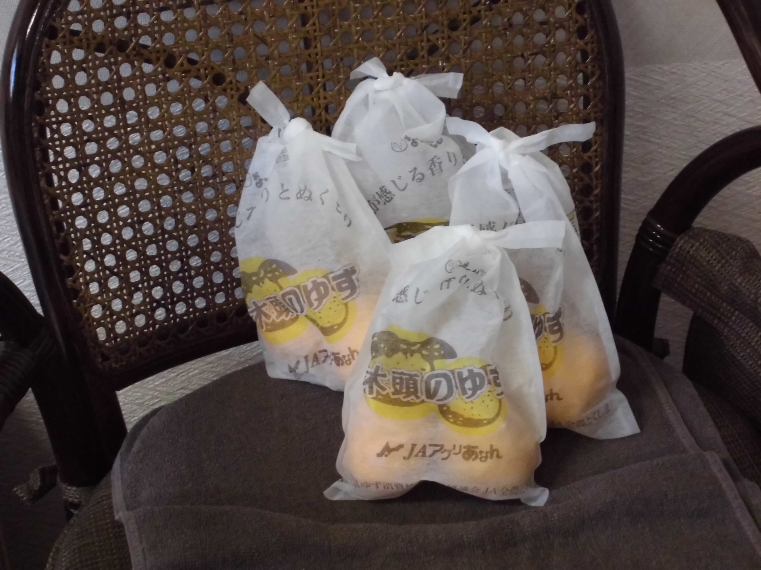 こちらは、出番待ちの”ゆず”達です。この袋に入れ、ぷかぷかと湯に浮かします。