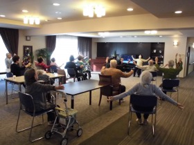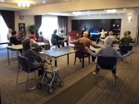 続いては、スタッフによる体操で、お顔から全身を動かします。