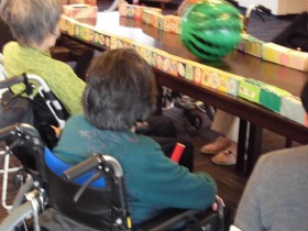 ブルーの大き目の玉、オレンジの大き目の玉、更にはビーチボールを転がしてホッケーを行いました。