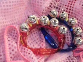 鈴は、リズムを取る時に使います。左右に持ち、元気良く振ります。