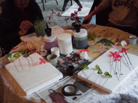 本日、有志を募りスタッフの指導の下アメリカンフラワーを作成致しました。