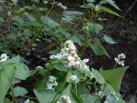中庭の蕎麦の花