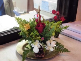 その他にも1階ラウンジには、ポインセチアやシクラメンの花々でいっぱいです。