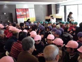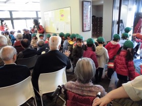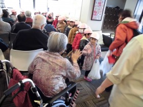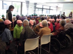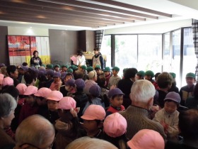 1階ラウンジは、入居者の皆さんと園児の皆さんで埋め尽くされ、ぎゅうぎゅう詰め状態です。