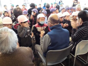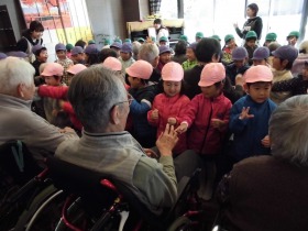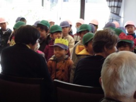 その後沢山の園児さん達が、それぞれ入居者様の前に来られお話をいたしました。