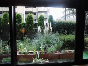 その隣で、西洋ススキがゆ~らゆ~らと揺れております。
