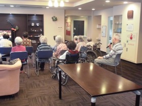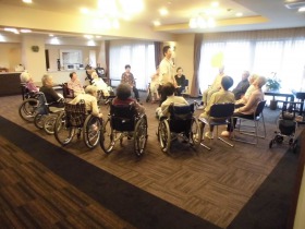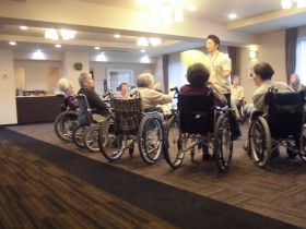 カラオケの音楽を聴きつけてお部屋から出て来られる方、様々です。