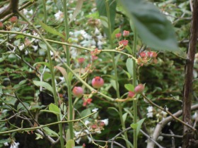 中庭の奥のほうで、ブルーベリーの実が生っておりました。
